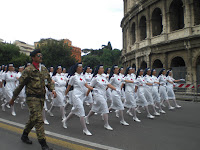 Today was the parade to celebrate the day that Italy became a republic. It is a nation wide holiday and today was the 63rd anniversary. Until June 2, 1946, Italy was run by a monarchy, the House of Savoy. Then began the facism reign of Benito Mussolini which resulted in Italy becoming engaged with Germany in World War II. After World War II Italy was a mess. It was occupied with foreign soldiers and no central government and was suffering the loss of the empire they had worked so hard to gain. So in a nationwide referendum, the Italian people rejected the monarchy and chose a republic form of government in June of 1946.